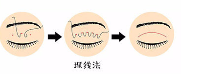 埋线法双眼皮做法相对简单,不需要切开皮肤,只用一根缝合线沿着画好的双眼皮线,将皮肤的真皮和睑板或上睑提肌腱缝合在一起,依靠其手术创伤所形成的疤痕粘连,形成双眼皮。