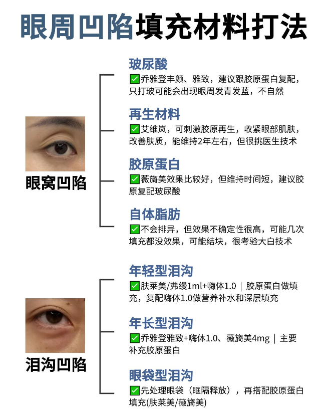 眼窝、泪沟属于动态表情区,没打好很容易会出现异物感、鼓包、肉条......真的要好好挑医生,不仅要看医生的技术经验,还要看审美!!