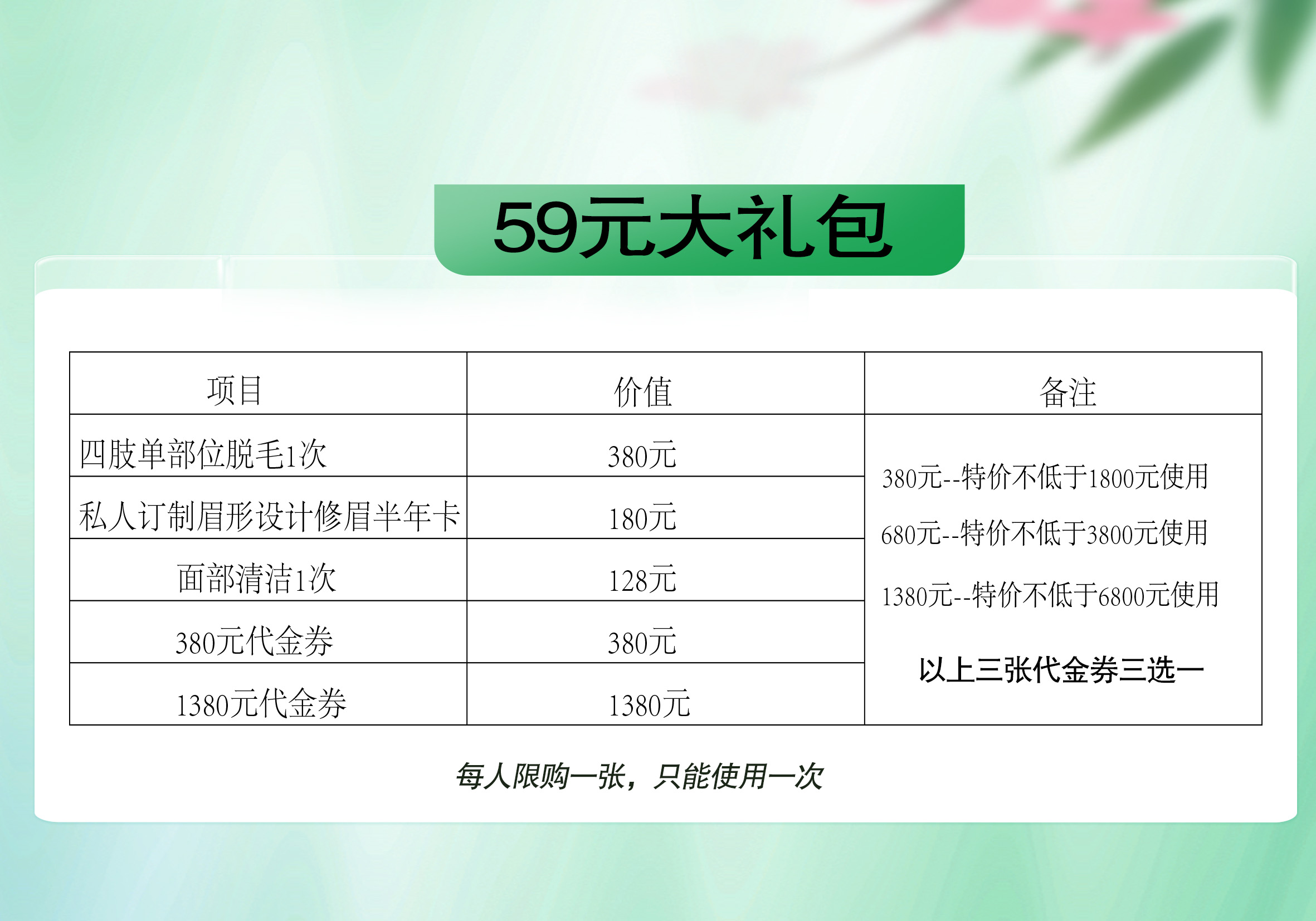 四肢单部位脱毛1次 380元 380元--特价不低于1800元使用